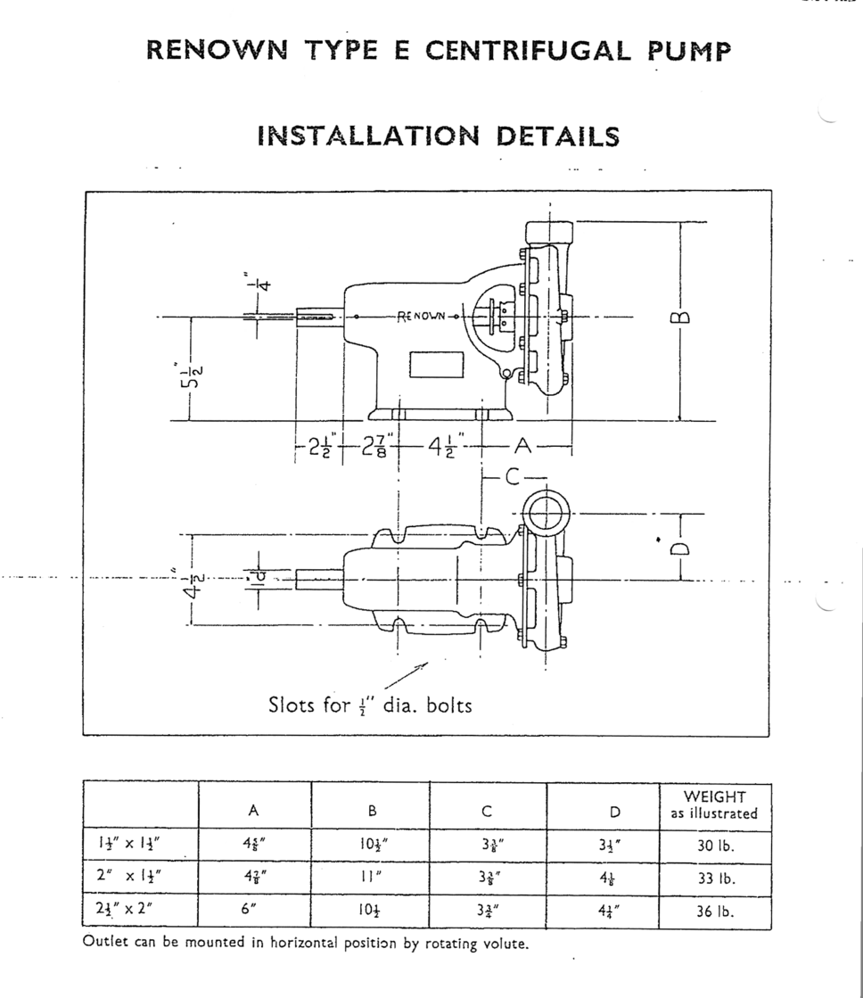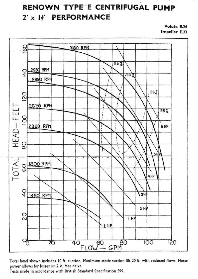 Renown Type E Centrifugal Pump - 2 x 11/2 inches Performance