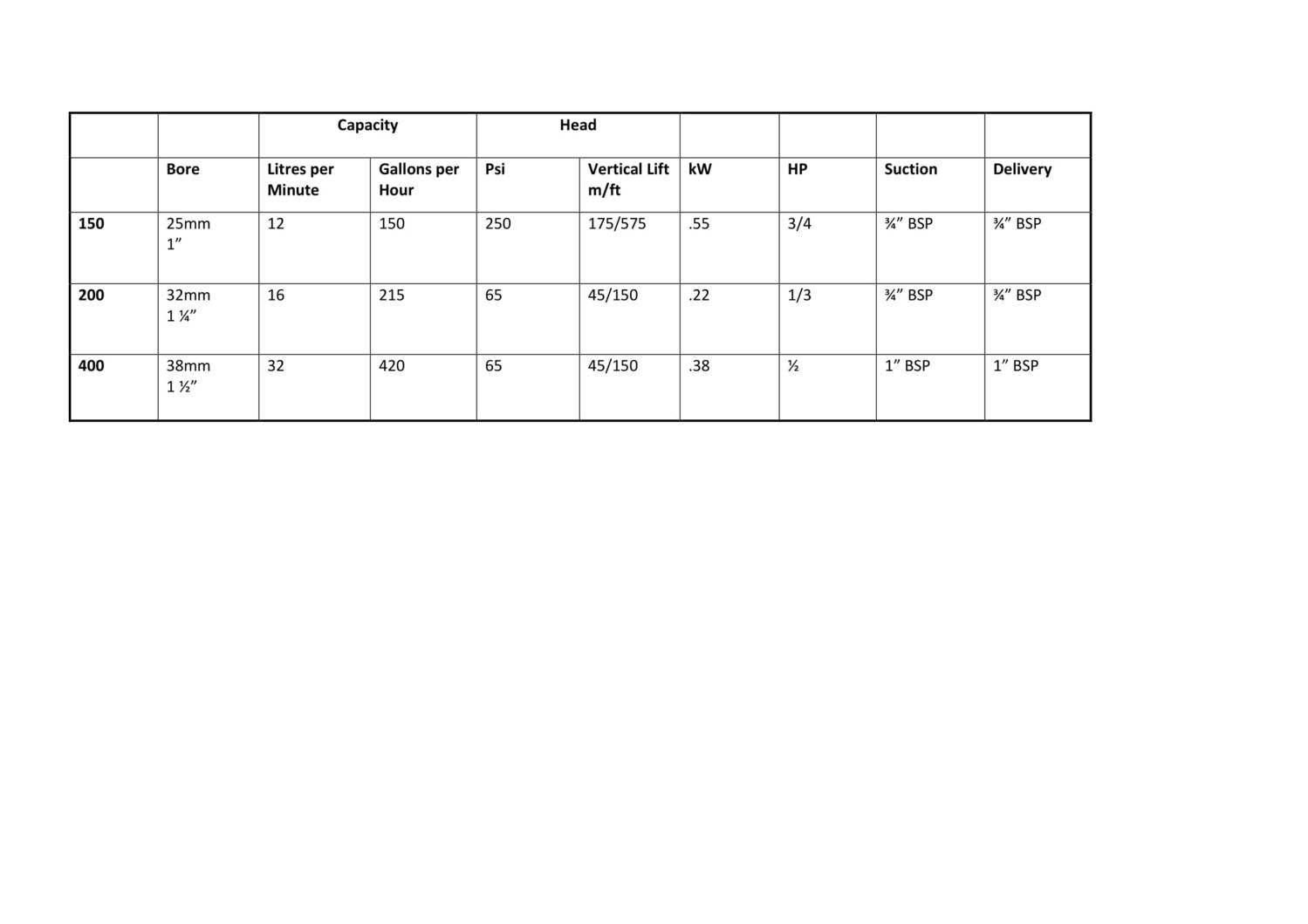 · Maximum Head: 65 psi (150 feet or 45 metres vertical lift)
